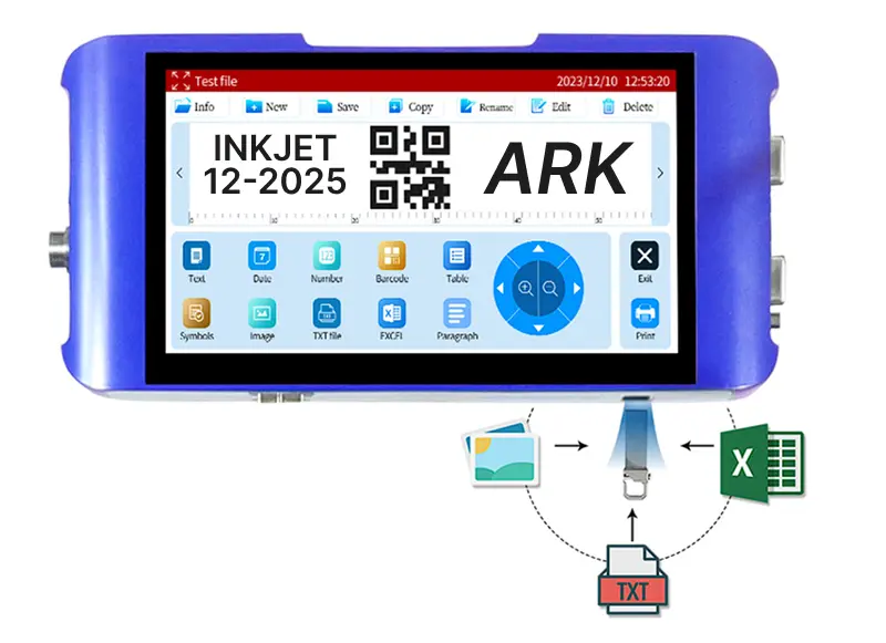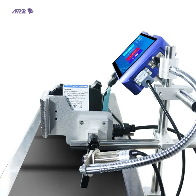 La codificadora de inyección de tinta térmica TIJ ARK-T100 es una solución avanzada para la impresión y codificación en líneas de producción industriales. Gracias a su integración con fajas transportadoras, permite imprimir en tiempo real sobre una gran variedad de materiales como cartón, plásticos, metales, tuberías, vidrio y componentes electrónicos.